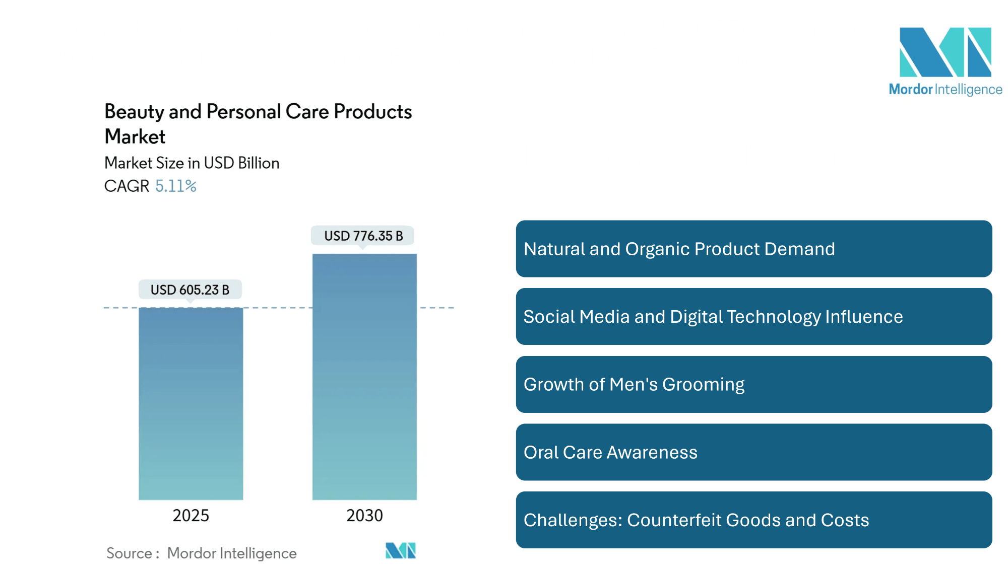 The global beauty and personal care products market is poised for steady growth over the next five years, driven by shifting consumer expectations, the surge in clean-label and wellness-focused products, and the ongoing expansion of digital commerce. As consumer preferences evolve, brands that effectively combine ingredient transparency, sustainability, digital engagement, and product performance will remain competitive.